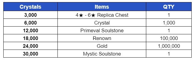 * Please be aware that ‘Alchemy Tickets’ will not be counted. Only Crystals will be counted to points.