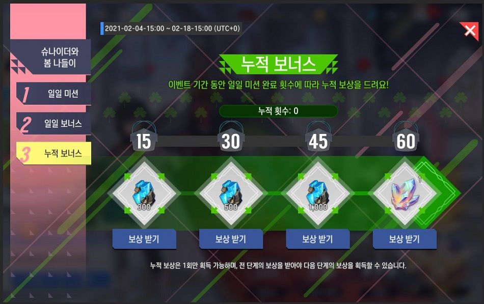 * Please be aware that the Daily Bonus will be reset at 15:00 (UTC+0)|