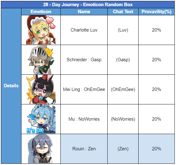 ** Once you check your 28th day attendance, you will be able to acquire a Random Emoticon Box.