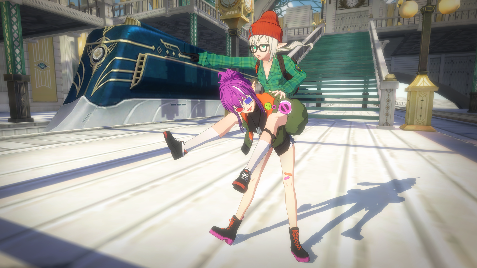 "Sir Astrid, the ticket booth is over there. ...Uh, w-will you let me down now?"