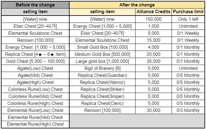 4)Along with the Alliance Raid renewal, the Alliance Shop will be also renewed.