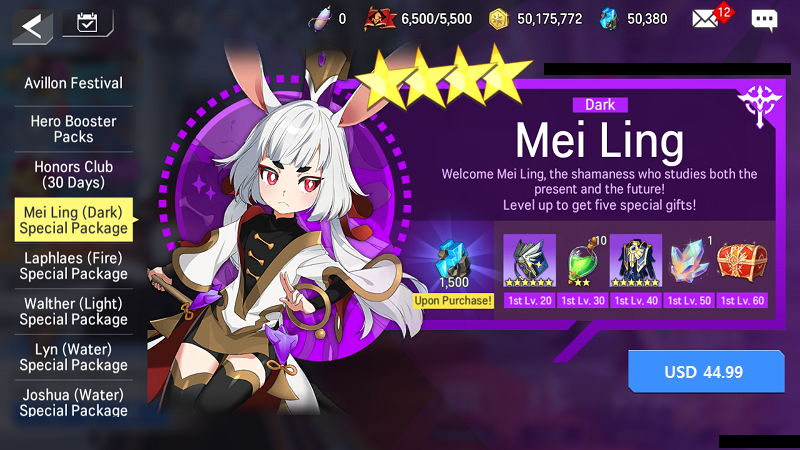 - Mei Ling (Dark) can be recruited by purchasing a Hero Special Package.