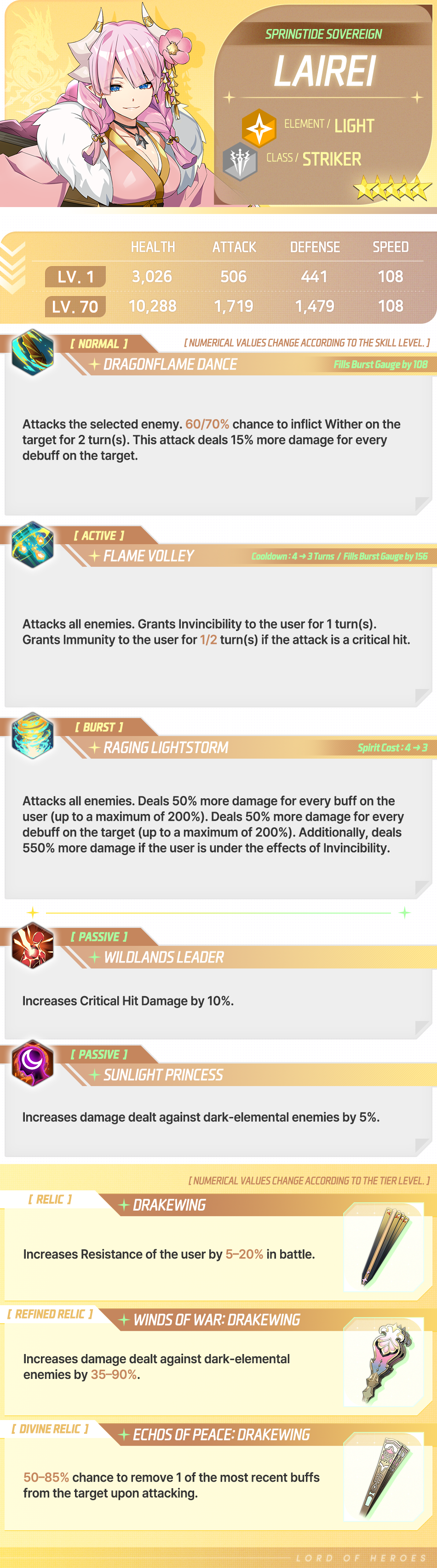 Amidst the rugged wildlands, there lives one who brings with her the warmth of a spring breeze: Lairei Yen, often called the Sunlight Princess and daughter of the dragonkin. No one knows how someone of her disposition could come from the traditionally hot-tempered dragonkin, but there are some who mistake her amicability and friendliness for weakness. They could not be more wrong. Lairei may be merciful, but she is not foolish.