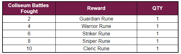- Provide rewards depending on the number of Coliseum challenge attack times!