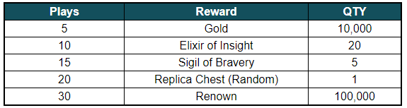 - Provide rewards depending on the number of ‘The Obelisk’ played times during the event period.