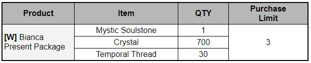 ※ You can claim the items via ‘Shop’ tab in [Mail] upon purchasing.