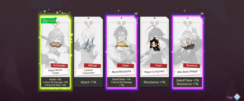 - After selecting three Heroes on the Wish List, players can craft 5 Accessories by spending 120 Temporal Threads