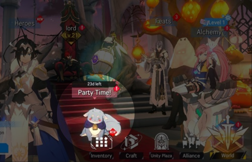 - During the event period, players can enjoy the main screen decorated with the Halloween theme all day long. Also, meet Pumpernel at the Unity Plaza as well!
