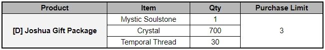 3) Extending Sales Period of Hero Gift Package: [Dark] Joshua