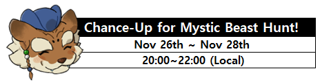 ◆ Event Rate : Mystic Beast appearance rate increased from Normal to High