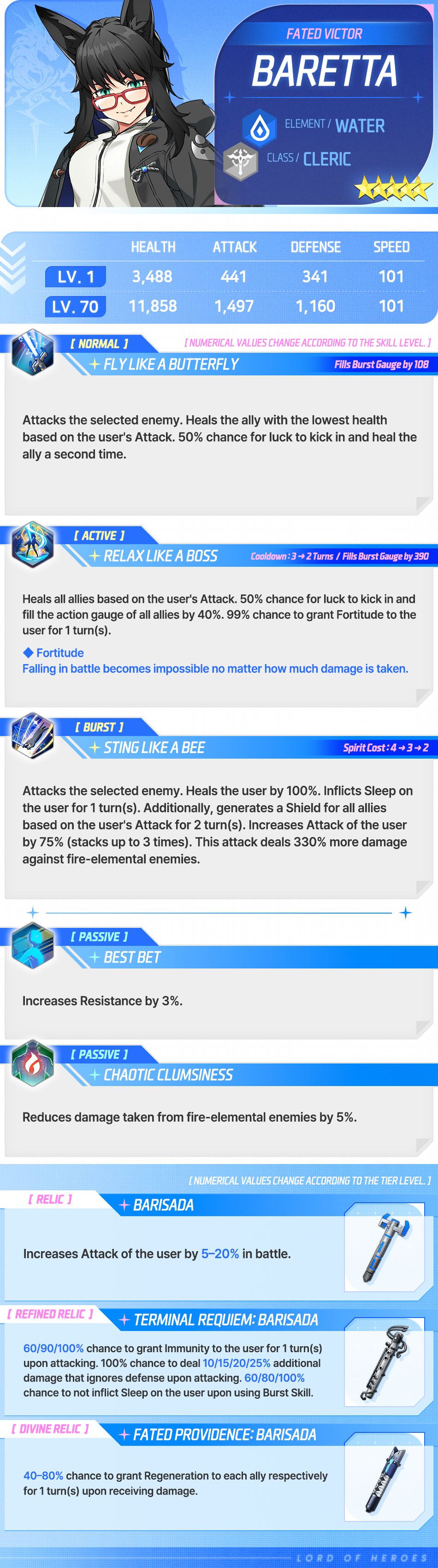 A clumsy assassin who loves betting more than anything else. Many reading this may wonder how it's possible for an assassin to be clumsy, but not a single person who's met Baretta can deny that it's true. She may seem somewhat lacking when it comes to day-to-day matters, but when it comes to her job, she gets down to business. That's not to say she doesn't still make mistakes—she does, but somehow they always end up improving her situation, and that may just be her most terrifying quality: her mysterious, incredible luck.