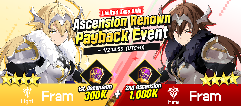 I'm hosting a special Payback event to celebrate the arrival of [L] Fram in the Universe. I'll be granting all Renown you've spent on ascending [F] Fram and [L] Fram!