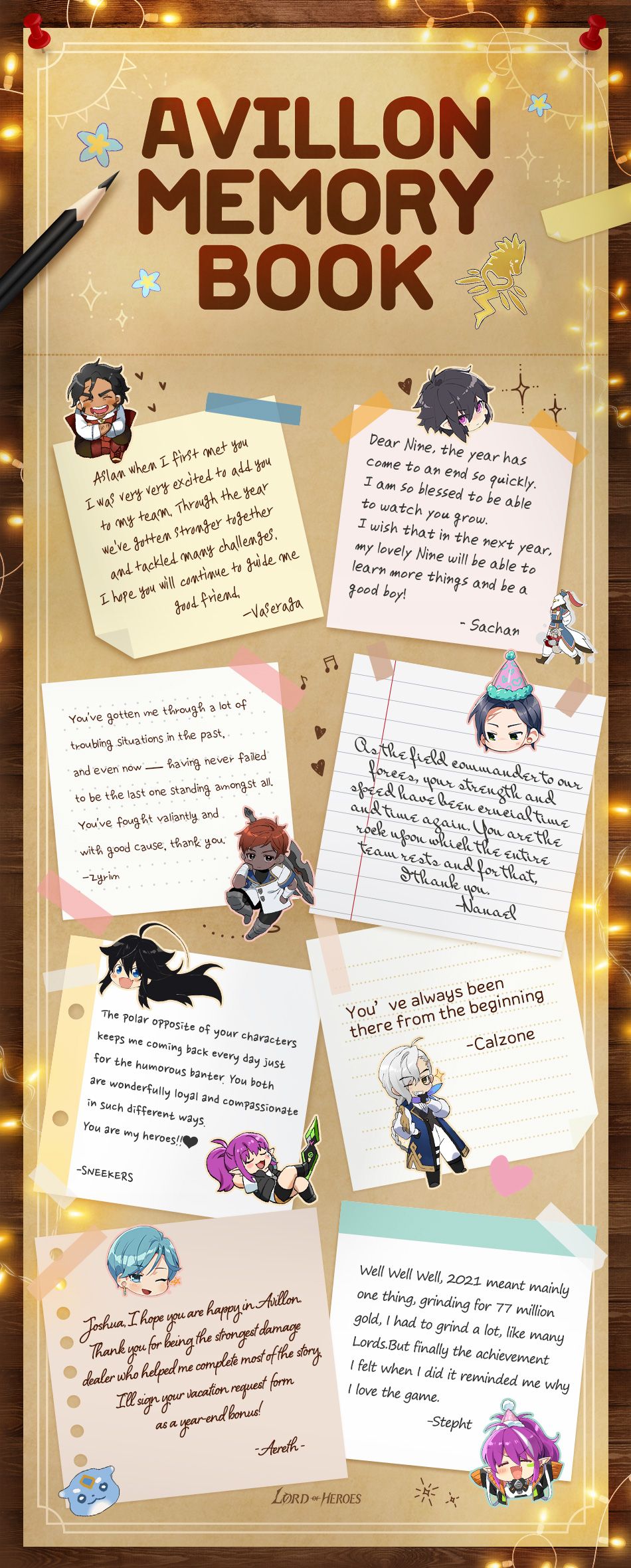 As this year is ending, I’m making a memory book to recollect all the good memories with the Knights of Avillon. Let’s fill out Avillon Memory Book with your sweet messages!