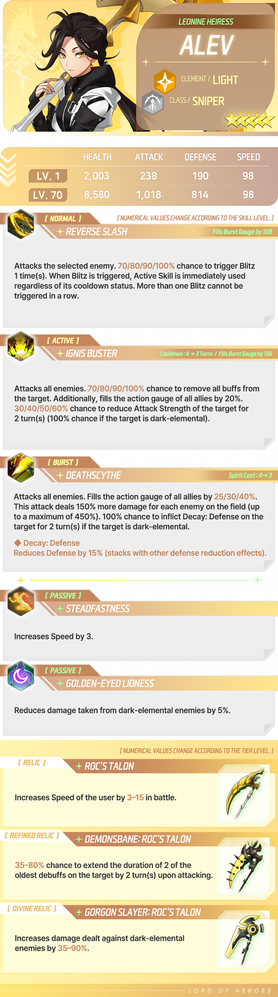 Even before beginning her life as a mercenary, Alev was widely known among mercenaries of the East as the "Golden-Eyed Hyena". It's not every day, after all, that you would see a scrawny orphan with a blank look on her face scour battlefields to collect what she could from the dead.