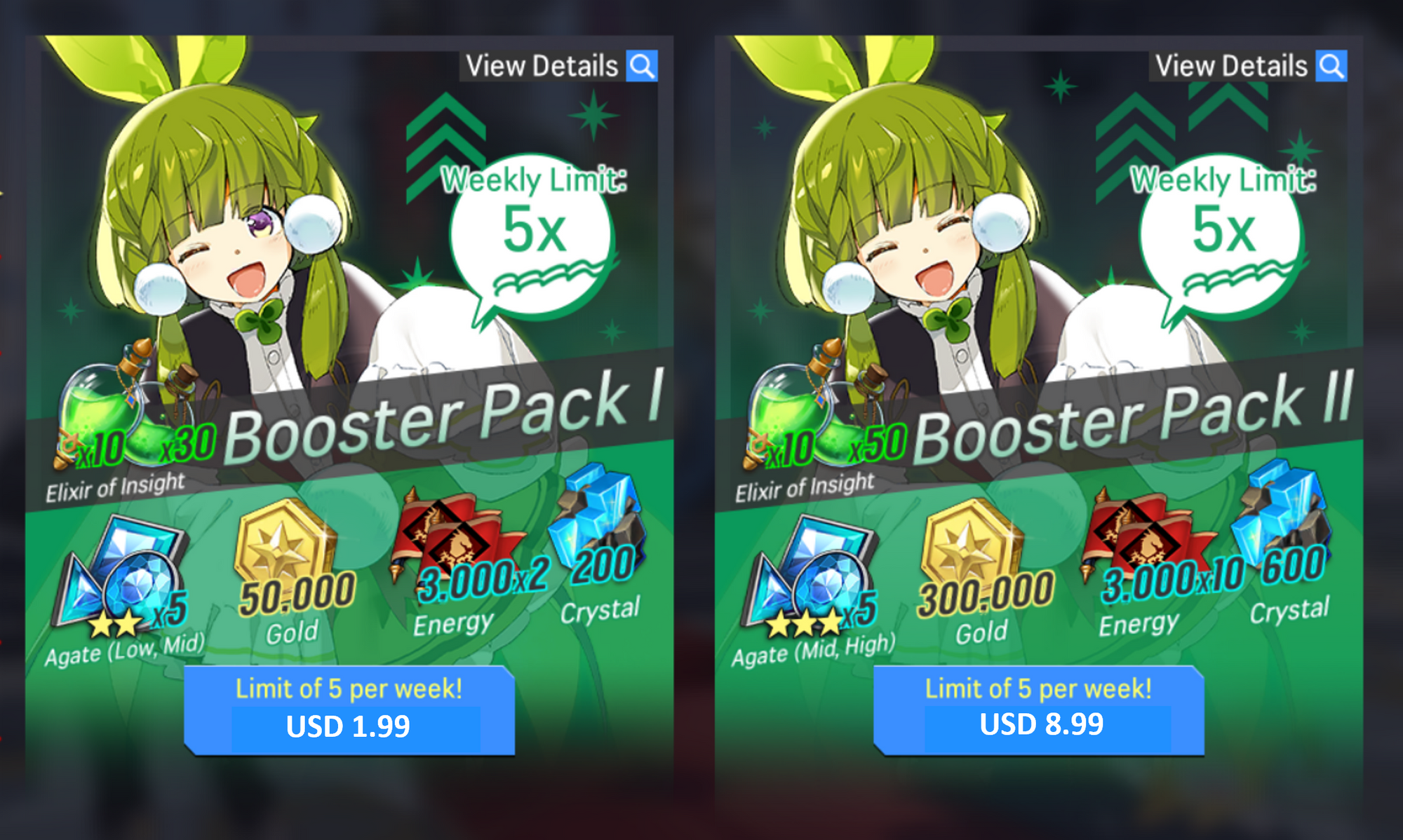 ※ As there are changes in Booster Pack II, we will be resetting purchase limit of both Booster Pack I & II after the maintenance on March 3rd. If you purchase the both packages before the maintenance, your purchase limit will be back to 5 after the maintenance.
