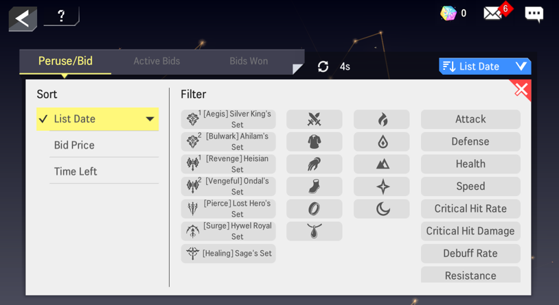 - A message with the final bidding price of the equipment will appear when the player fails to win the bidding.