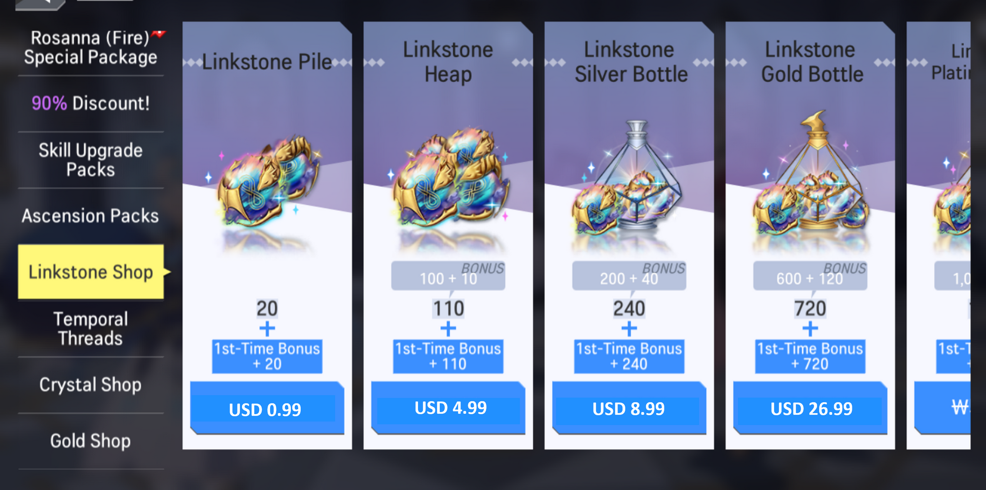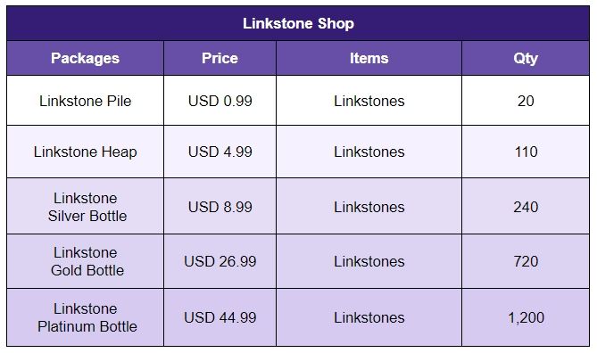 - Players will be able to earn double Linkstones for the very first purchase of each package.