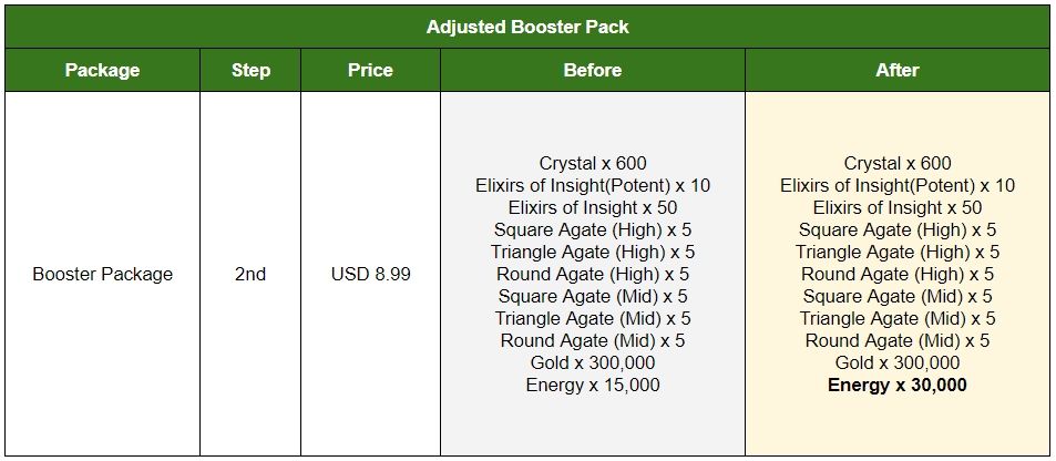 - The number of Energy included in ‘Booster Pack II’ will be changed. Please check the image below for details.