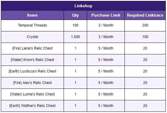 - Players will instead receive 'Exp' of the summoned Relic, and 'Linktraces' when they summon the same Relics they already possess.