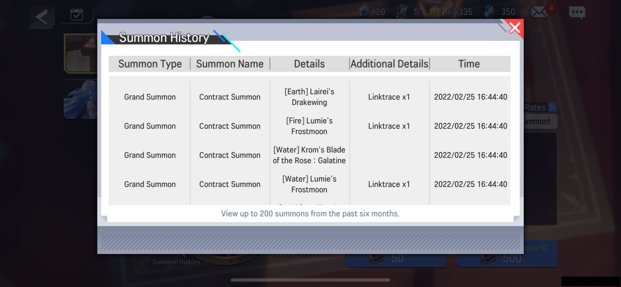 - Players can summon the same Heroes they have already recruited, but instead, they will receive 'Spiritus Gem' which will enhance the Hero's Aptitude, as well as 'Linktraces' which are exclusive items to the summon mileage shop.