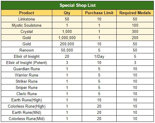 - You can use the collected medals for exchanging various items at the special shop.