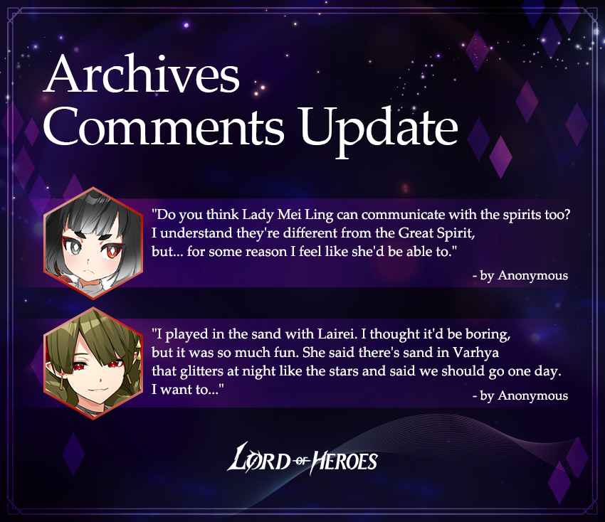 - New Archives comments for following Heroes will be added.