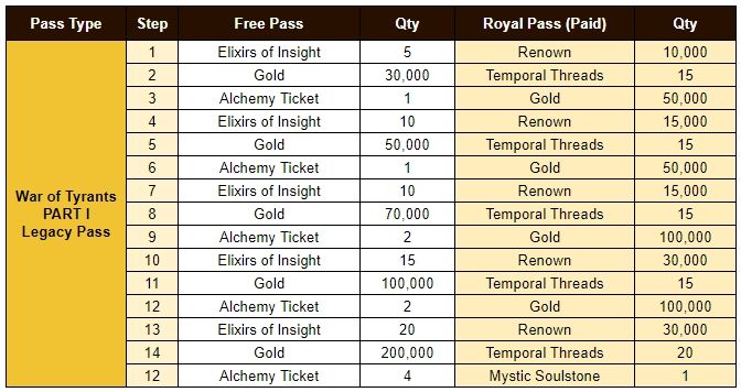 - Content: War of the Tyrants PART I Legacy Pass