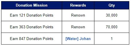 - Players who have earned donation points can complete the [Donation Mission] and will receive a reward for each step of the donation mission.