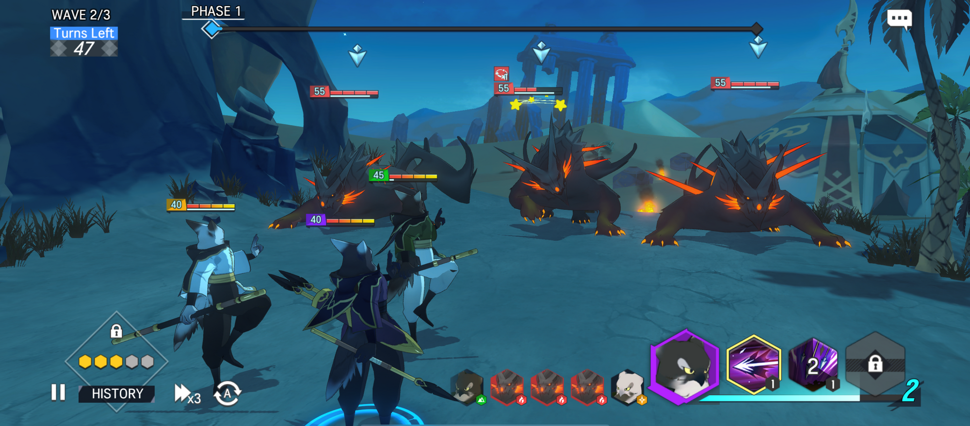 - When the Phase battles have occurred, any buffs/debuffs/skills effects will not reset until all phase battles are over.