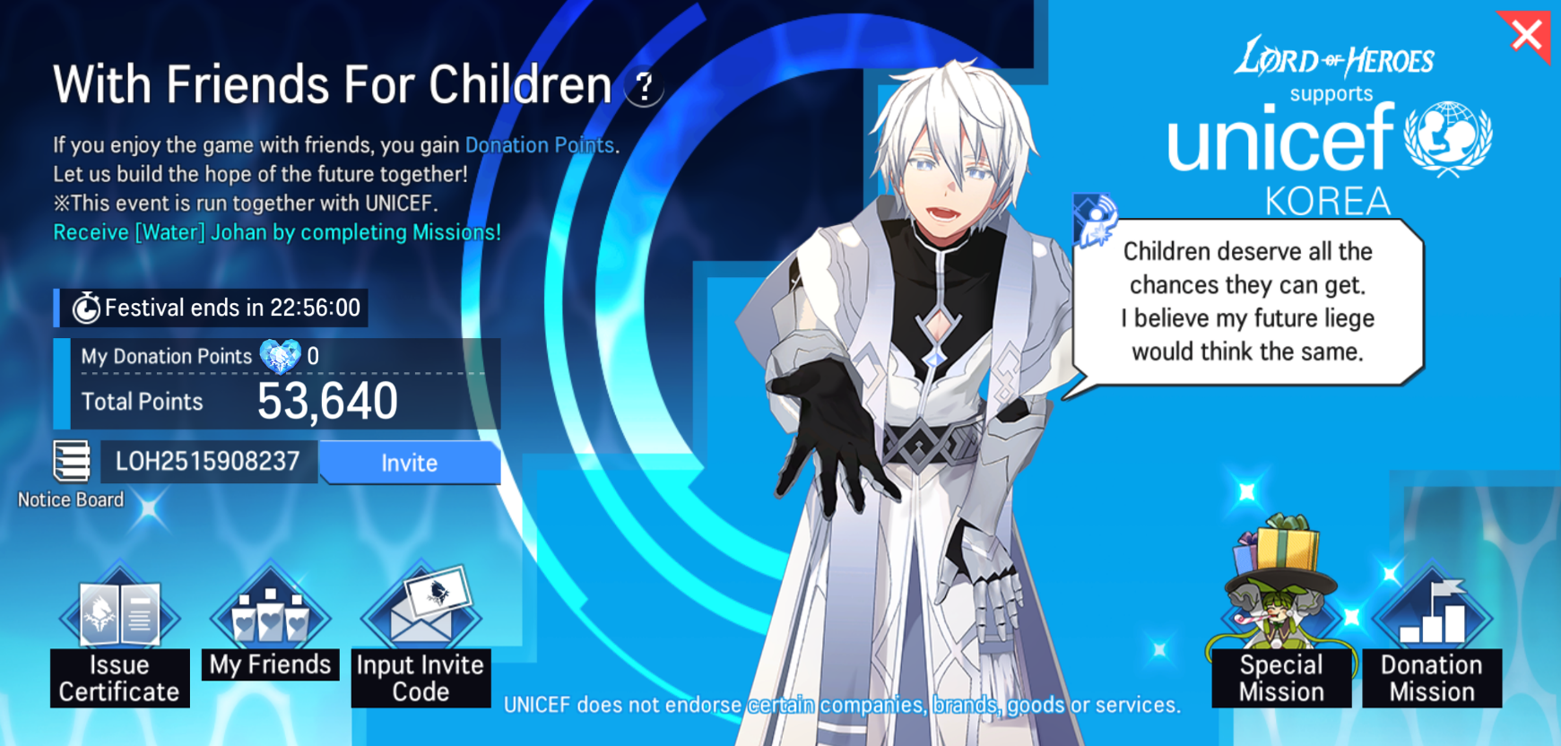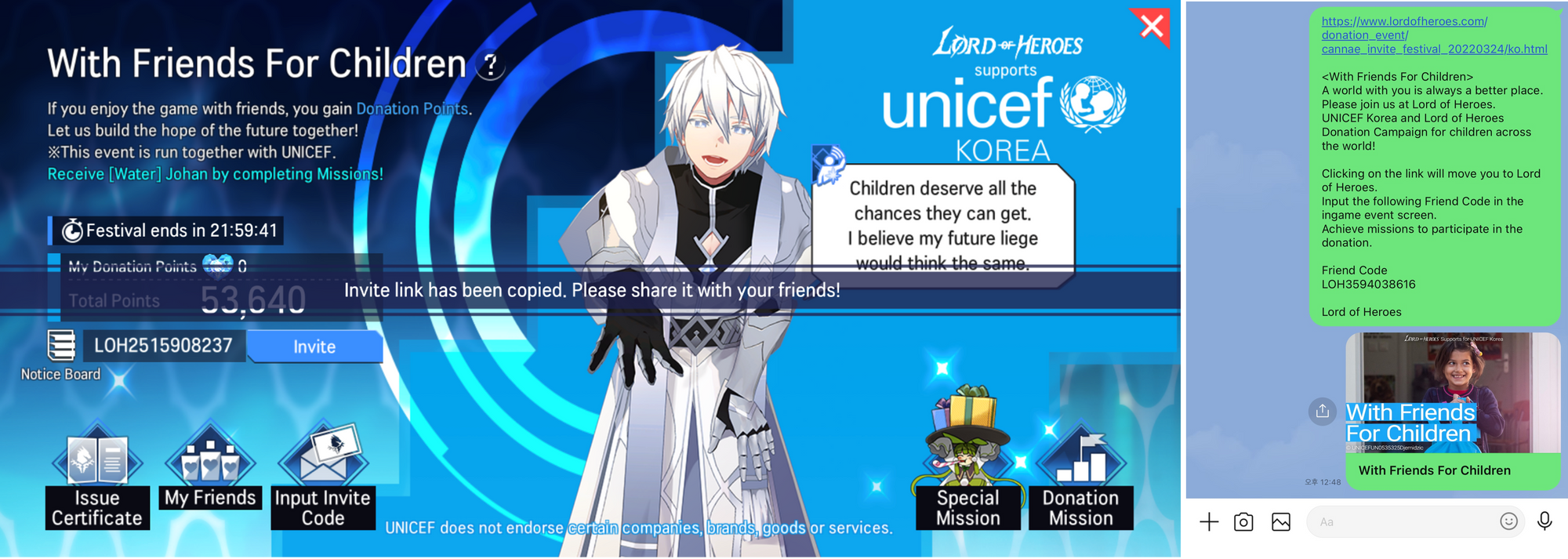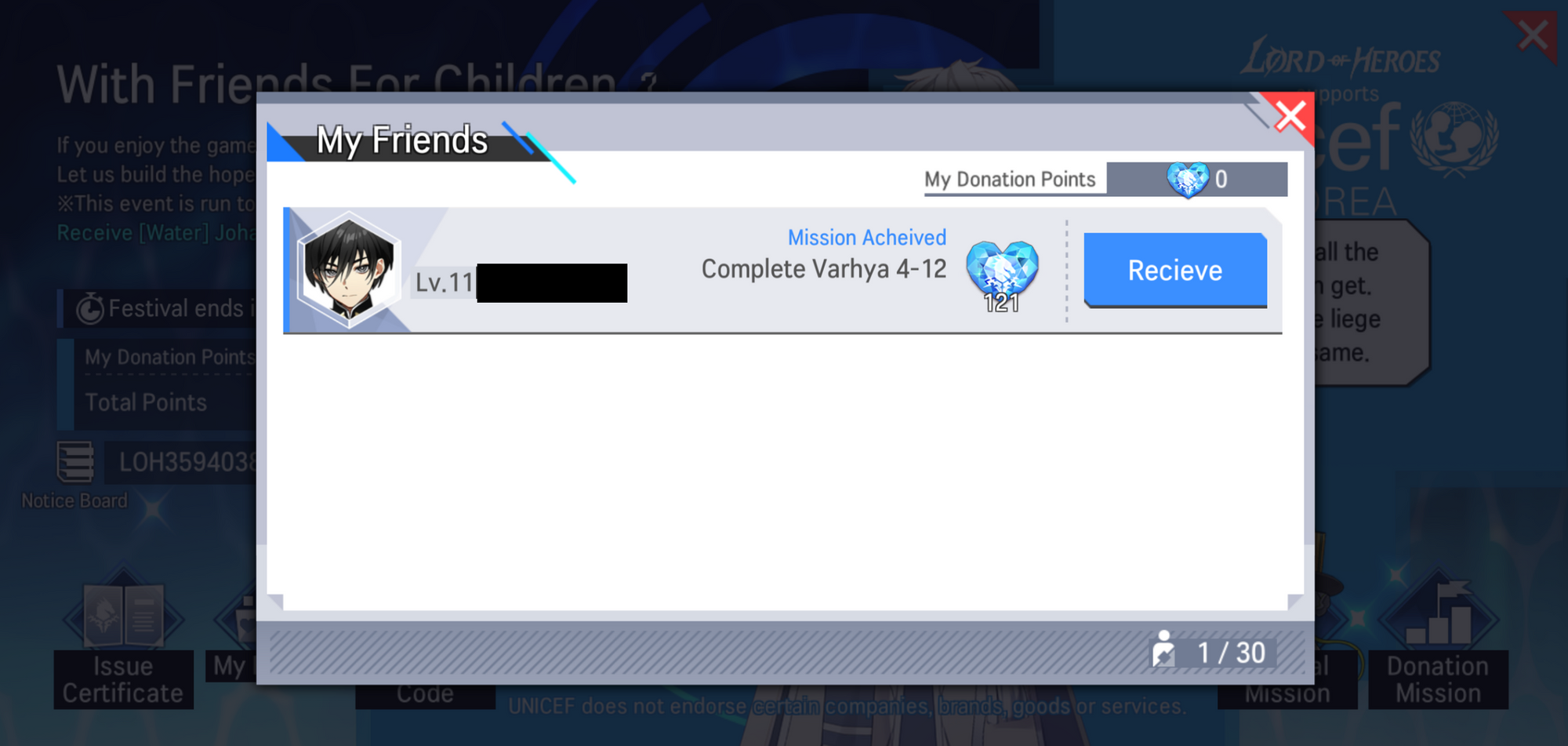 - When the event campaign is over, Lord of the Heroes will donate actual donations depending on the number of total donation points to UNICEF Korea.