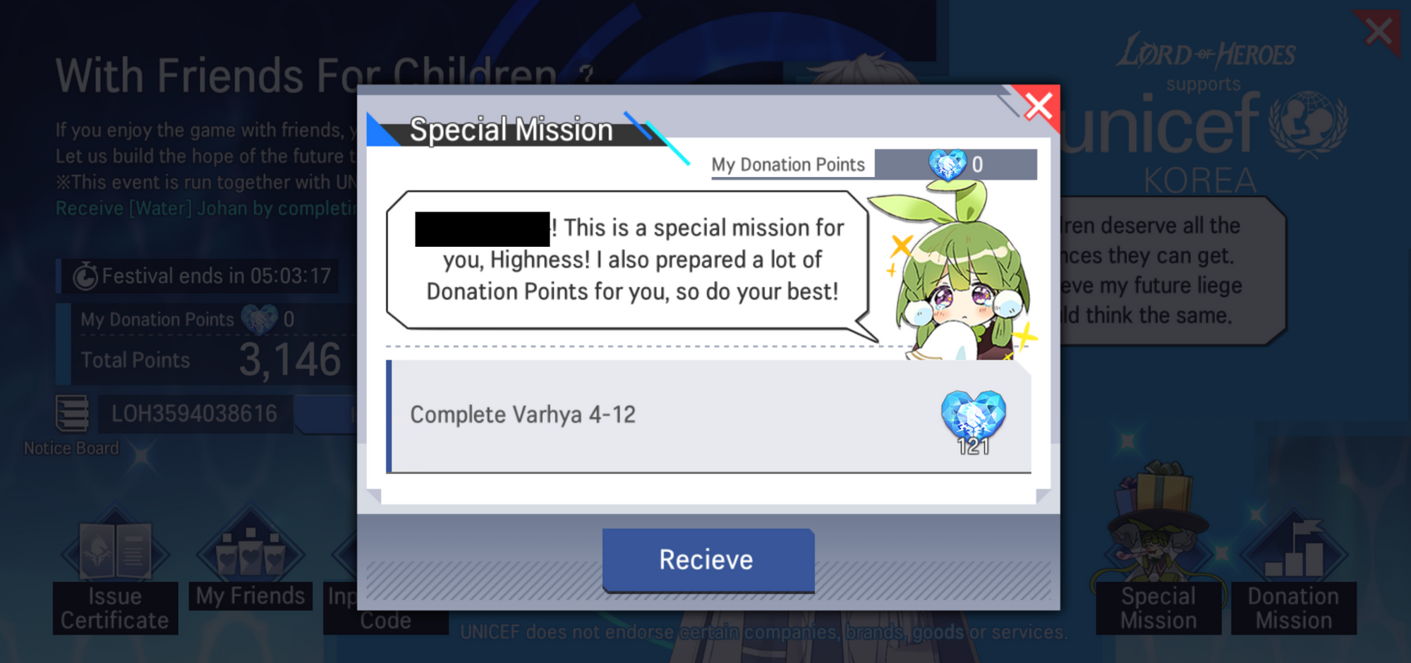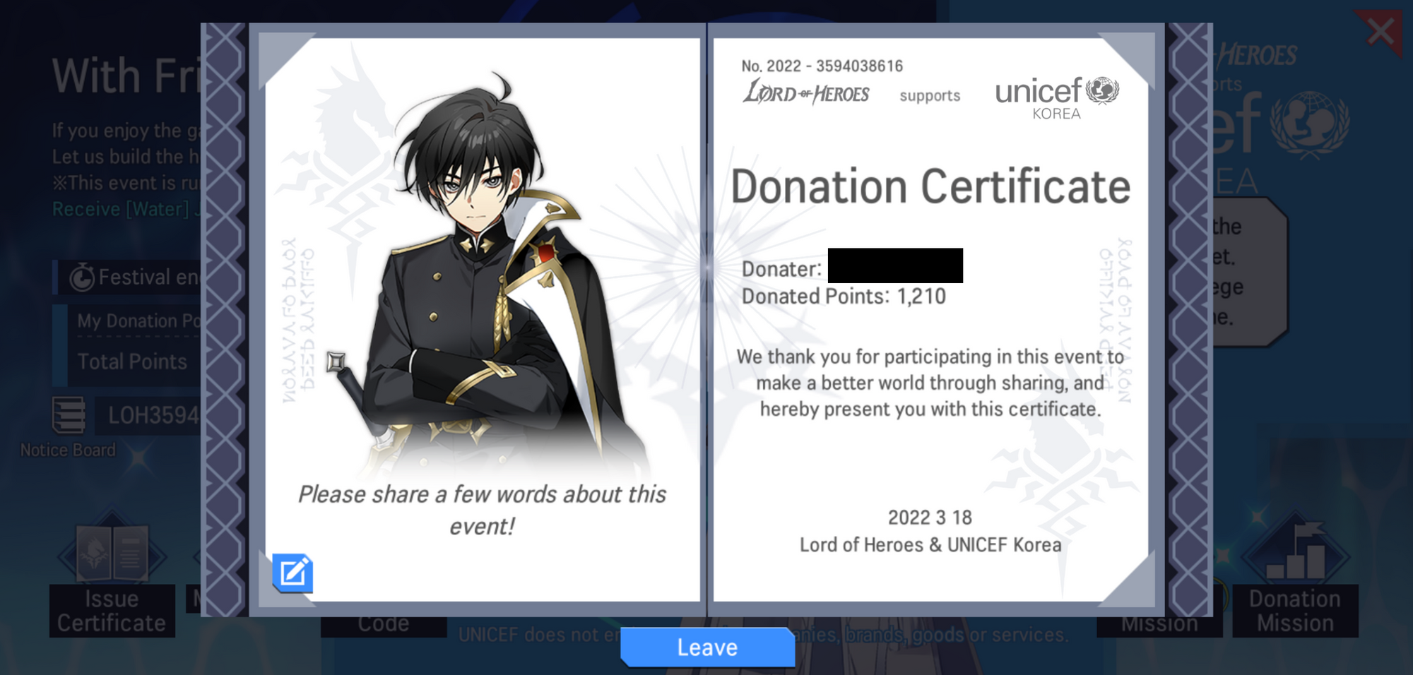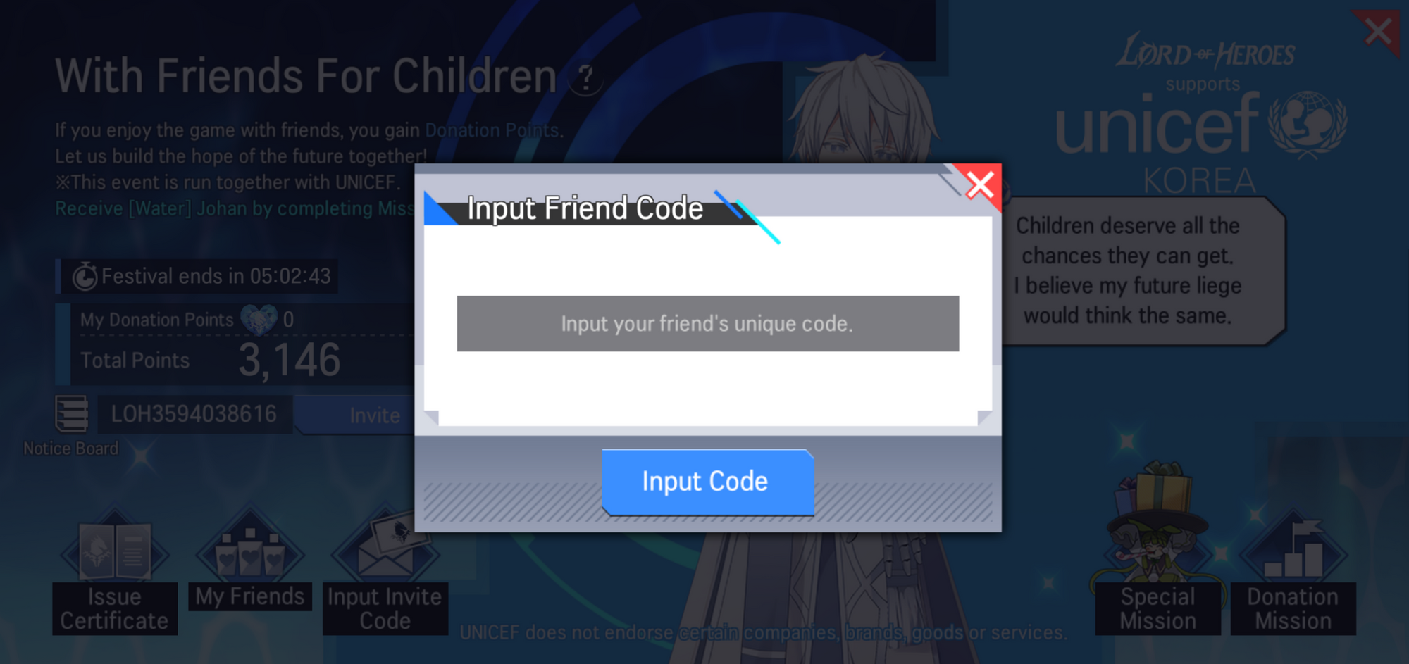 - When the event campaign is over, Lord of the Heroes will donate actual donations depending on the number of total donation points to UNICEF Korea.