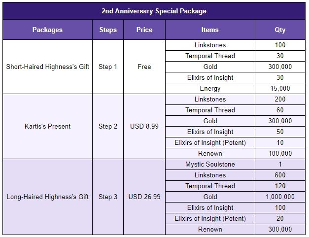 ※ Players must purchase prior steps of the packages in order to purchase the next step of Special Packages.