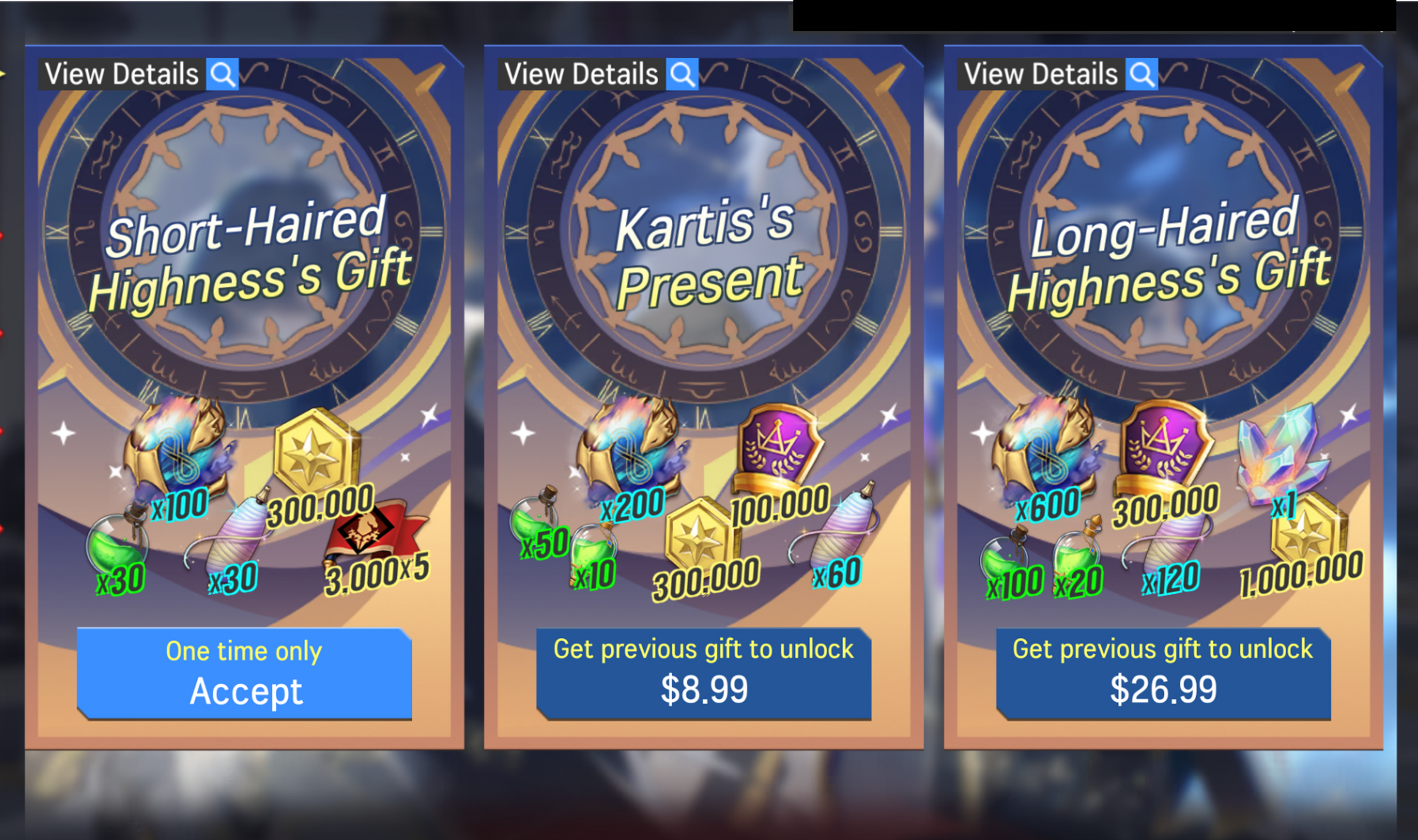 - Heroes, equipment, and items (in-game currency, etc.) that are included in the package can be sold in other in-game events and shops.