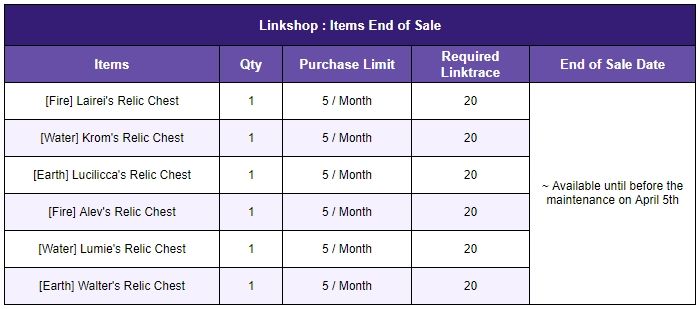 - Sales Period : After maintenance on Apr 5 ~ Until further notice