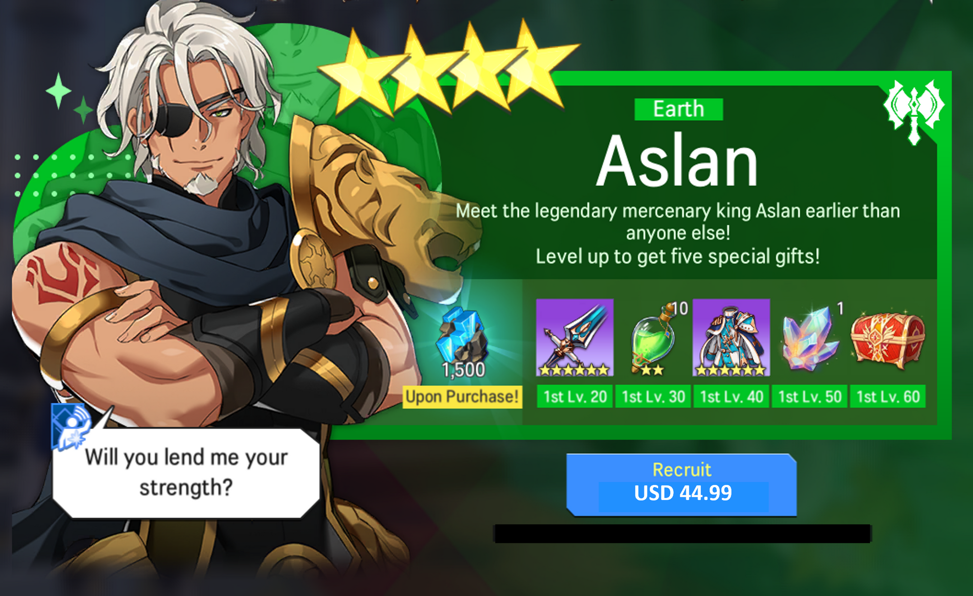* Sales Period of [Earth] Aslan has been changed to April 4th, 15:00 (added on Apr 1, 05:32)