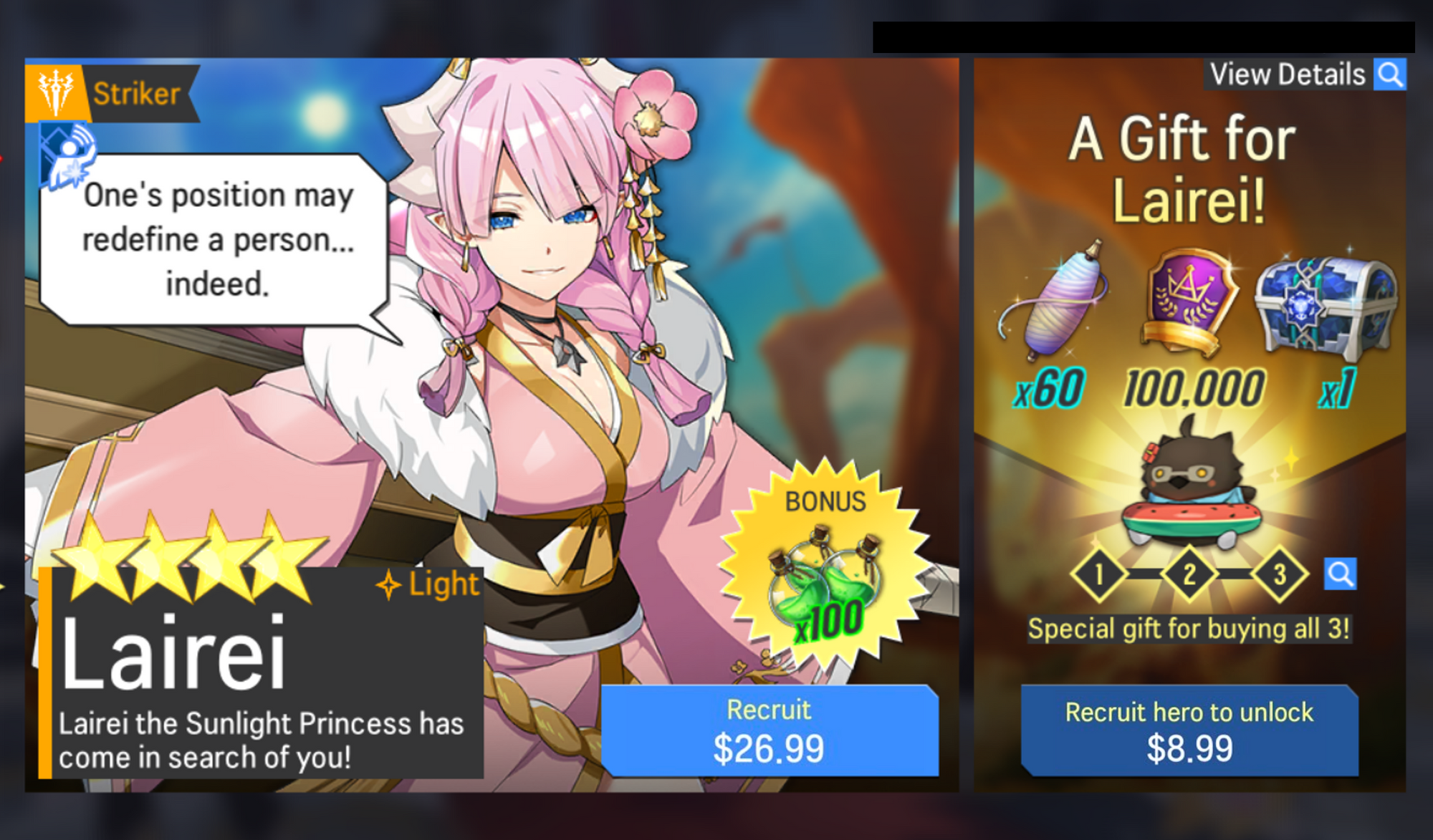 1) Hero Package: [L] Lairei (Striker) is back on Sale