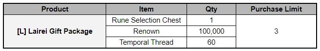 ※ Players who already have purchased [L] Lairei Hero Package during the past sale period will not be required to purchase an additional Hero Package to purchase the ‘Hero Gift Package’.