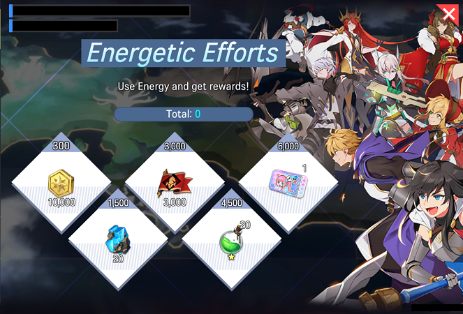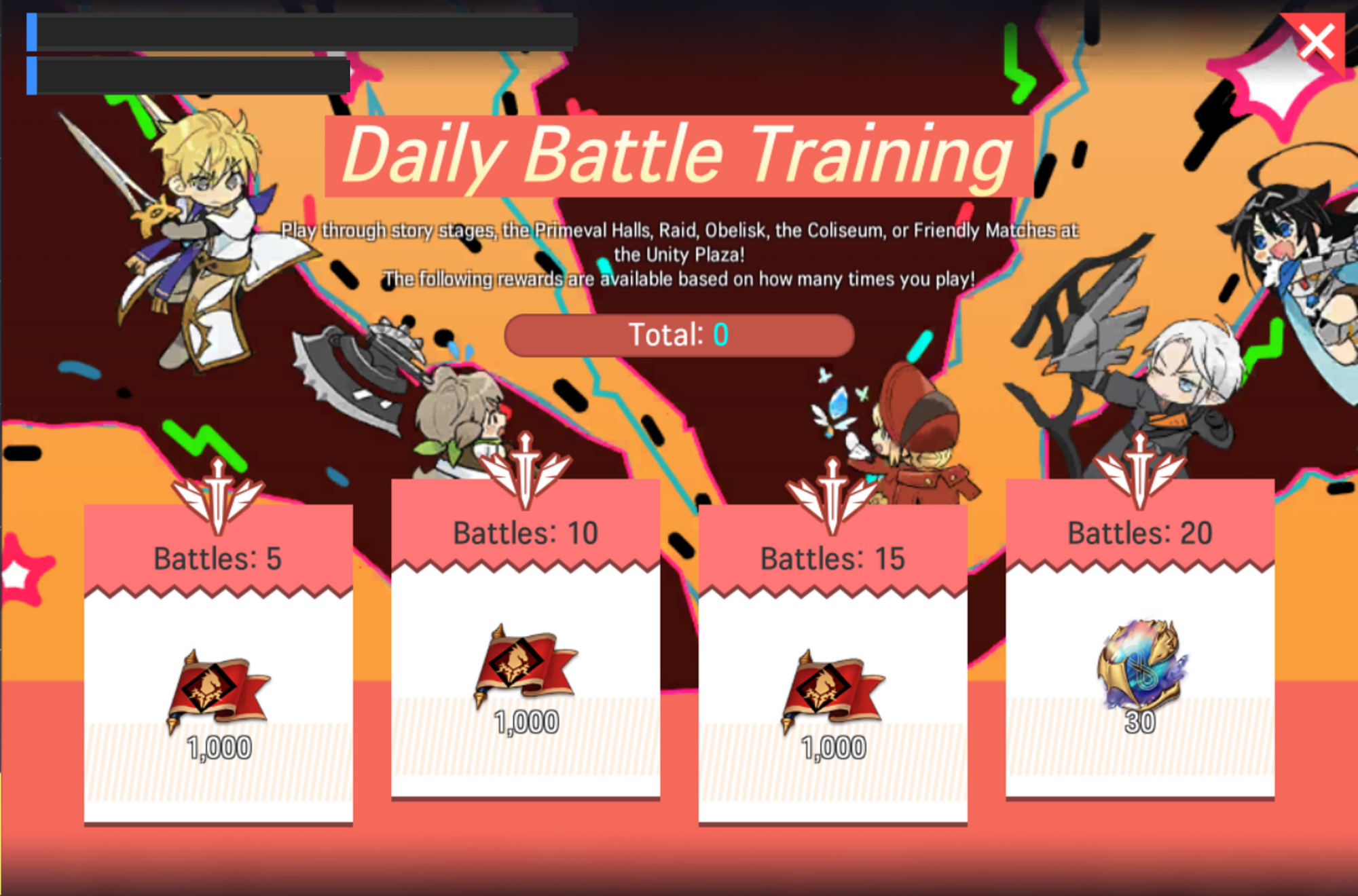 - Rewards are available upon the number of times played story stages, Primeval Halls, Raid, Obelisk or coliseum!