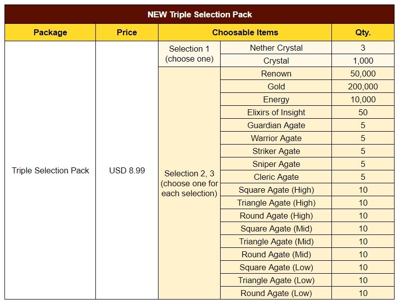 - We will be adding new items to the [Triple Selection Pack] as well as adjusting the package price.