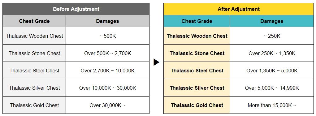 - Number of damage required for each grade of the Thalassic Chest will be adjusted.