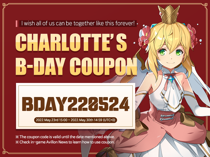 Coupon [Coupon] May 24th is Charlotte’s Birthday! GM Isola Read more posts by this author. GM Isola Monday, May 23rd 2022 May 24th is Charlotte’s Birthday! 🥳Let's celebrate her birthday and also download wonderful wallpapers of her!🎉"I am a year older now! I feel more like... an adult. Huh? I still have a long way to go?"