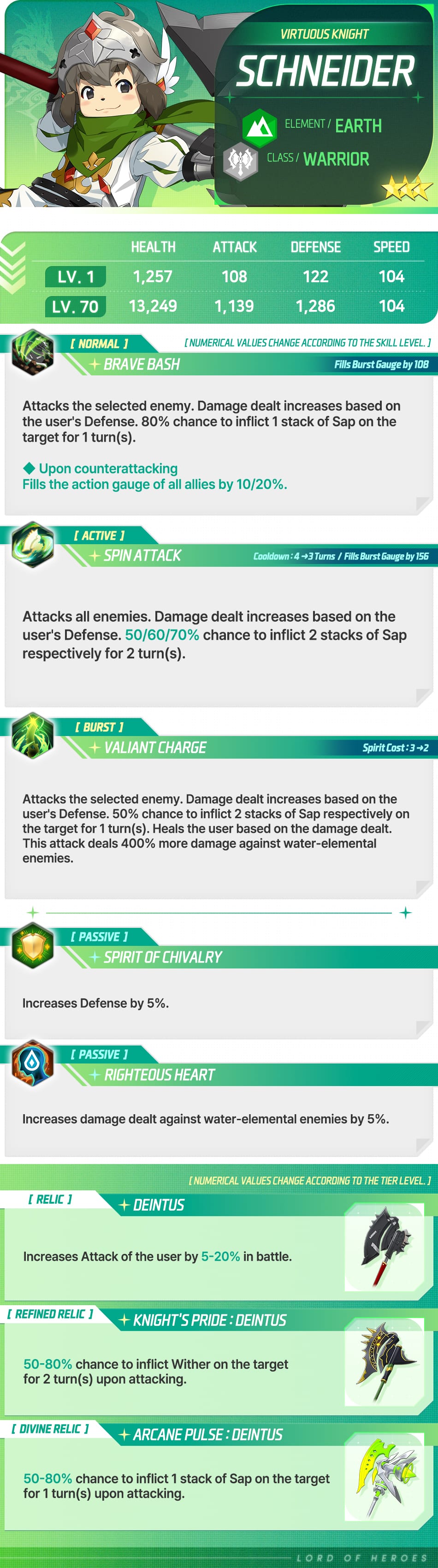 A wandering knight from the fallen kingdom of Neto Doum who operates around the borders of Avillon. Schneider possesses extraordinary conviction and a sense of responsibility, thanks in no small part due to his admiration of knighthood and chivalry growing up. Pure and upright, he takes many things literally and can be naive at times, which is part of his charm.