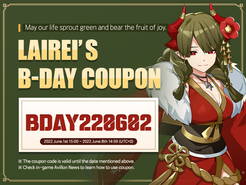 Coupon [Coupon] June 2nd is Lairei’s Birthday! GM Isola Read more posts by this author. GM Isola Wednesday, June 1st 2022 June 2nd is Lairei’s Birthday! 🥳Let's celebrate her birthday and also download wonderful wallpapers of her!🎉"It is said that deep-rooted trees do not sway in the wind. No matter what lies ahead, with you, I am sure we will overcome."