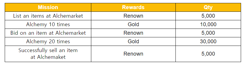 - Visit the Alchemarket with Rouin during the event period and receive rewards!