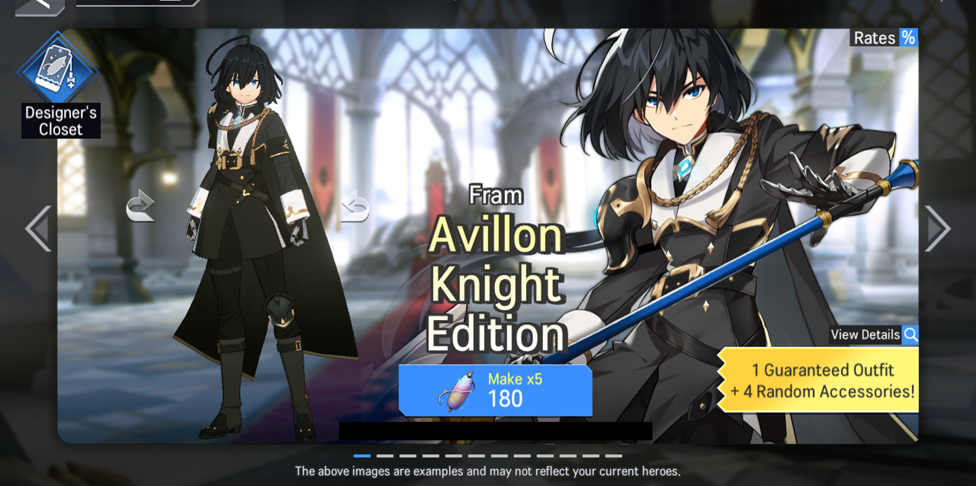 - Fram’s [Avillon Knight Edition] will be released at Boutique.