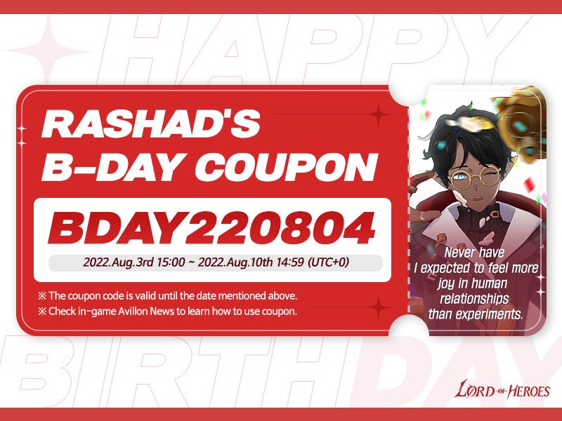 Coupon [Coupon] August 4th is Rashad's Birthday! (Revised) GM Rhodon Read more posts by this author. GM Rhodon Wednesday, August 3rd 2022 August 4th is Rashad's Birthday!π₯³Let's celebrate his birthday and also download wonderful wallpapers of him!π"Sugar plays an important role in brain activity. I should save some of the gifts and have them from time to time."