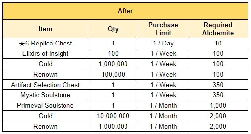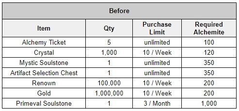 - There will be adjustments over the list of the items that were available to purchase from the Alchemite Shop. Please refer to the list below for the changes in the Alchemite Shop.