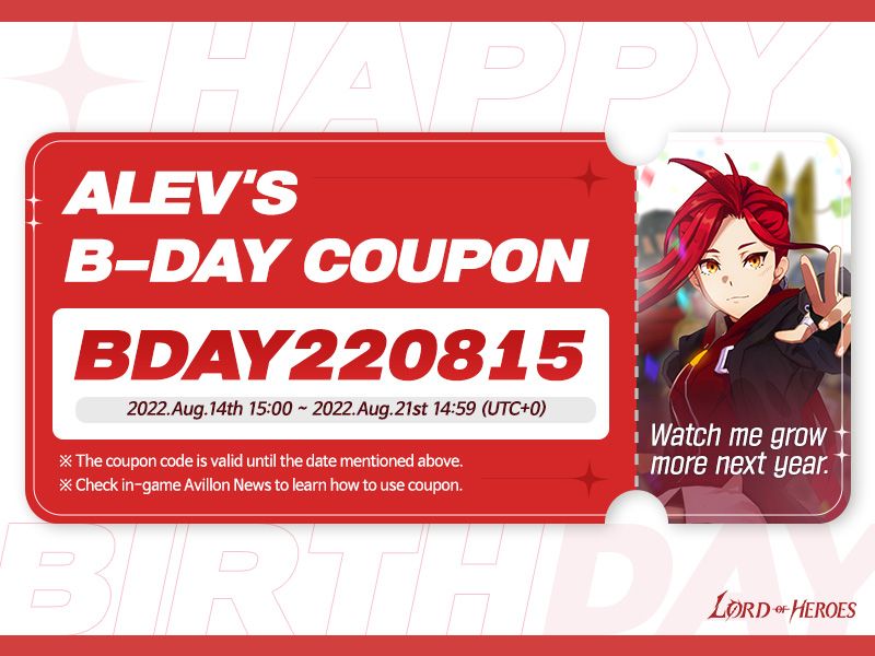 Coupon [Coupon] August 15th is Alev’s Birthday! GM Rhodon Read more posts by this author. GM Rhodon Sunday, August 14th 2022 August 15th is Alev’s Birthday! 🥳Let's celebrate her birthday and also download wonderful wallpapers of her!🎉"There are still things that are difficult for me. But I am sure I can handle them since you are with me. Thank you."