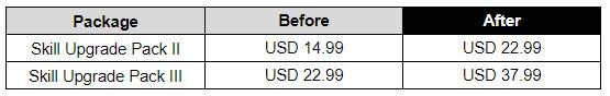 - The price of both Skill Upgrade Pack II and III that was applied as the event price will be changed to its original price.