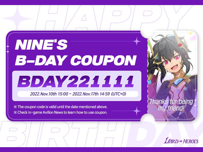 Coupon [Coupon] November 11th is Nine's birthday! GM Isola Read more posts by this author. GM Isola Thursday, November 10th 2022 November 11th is Nine's birthday! ππLet's celebrate his birthday and also download wonderful wallpapers! π₯³"My favorite day of the year is finally back! I bet my birthday this year will be just as awesome as it was last year!"